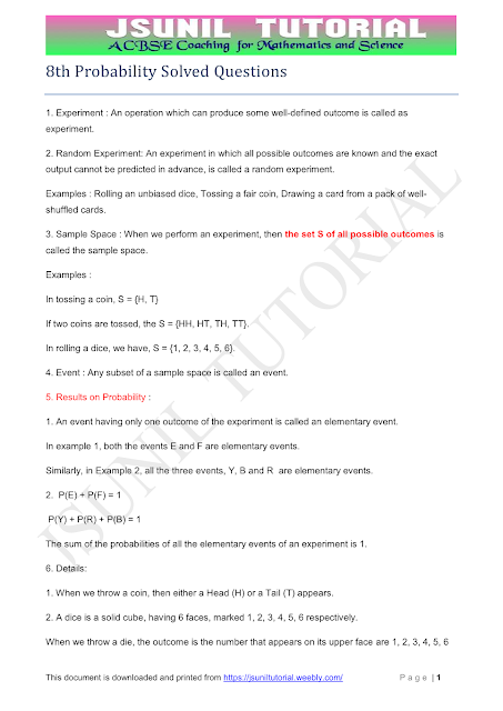 CBSE Class 8th Maths ch.Probability formula and test paper